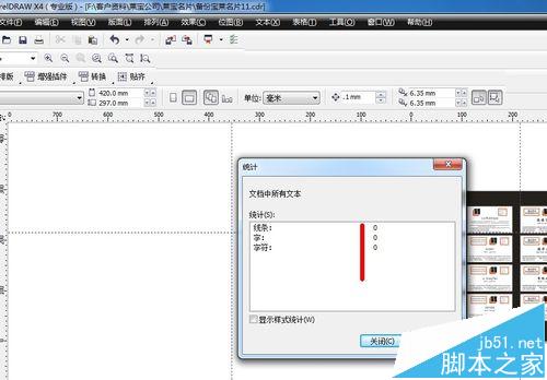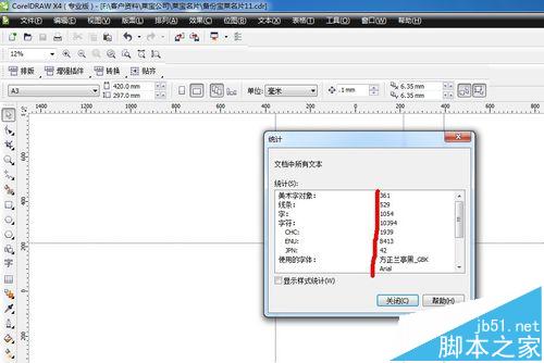 3、通過工具-文本-文本統計 檢查出很多字體。現在我們就需要轉曲了。方法簡單,選擇你需要轉曲的所有字體。命令:CTRL+Q.再此檢查全部變為O,就說明轉曲成功了。 保存好圖檔,發到印刷廠制作吧。