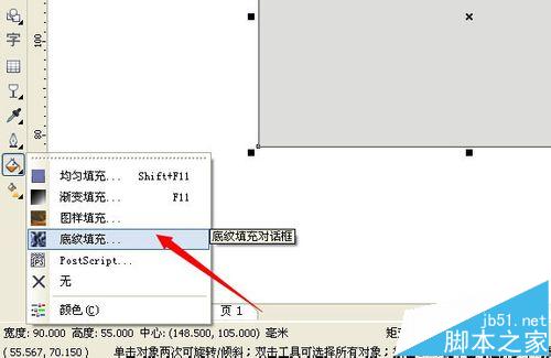 1、打開軟件繪制你所需要大小的矩形。填充淺灰色。選擇填充工具,底紋填充。