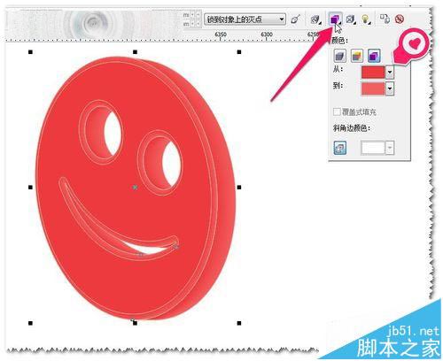 8、把笑臉的圖形填充好顏色,使用立體化工具——拉出立體的形狀并設(shè)置好各個參數(shù)——達到滿意效果為至。如圖