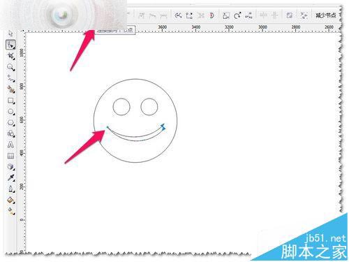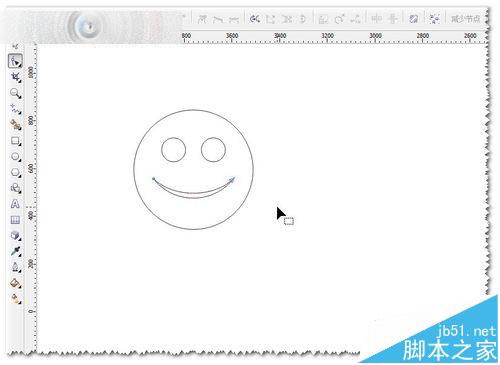 2、這個笑臉比較單調(diào)一些——想做細節(jié)的調(diào)整!這里想把微笑改一下,怎么弄呢?先轉(zhuǎn)曲——選中圖形——CTRL+Q轉(zhuǎn)曲,然后打散——CTRL+K打散。如圖