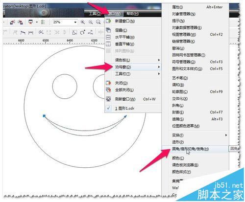 6、然后對月亮牙的微笑,稍微做一個細小的圓角處理。進入窗口——泊塢窗——圓角/扇形切角/倒角。如圖