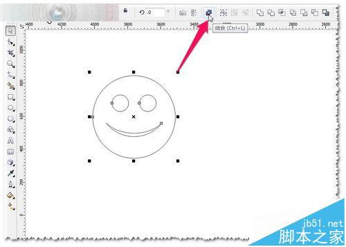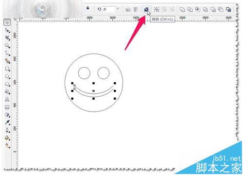 5、當(dāng)然你也可以自己畫一個更漂亮的微笑哦。這里使用框選全選圖形——進行進行合并——CTRL+L結(jié)合。如圖