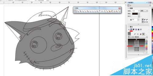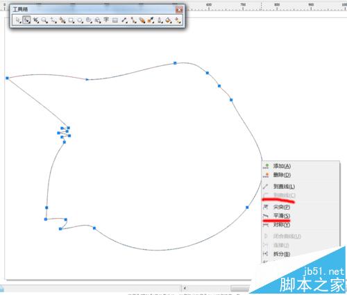 4、選中除狼毛外的節點,右鍵,平滑。 調整線條,完成灰太狼臉部輪廓。
