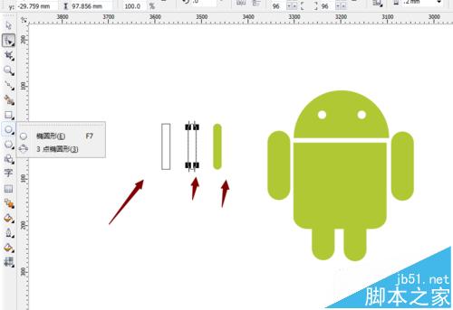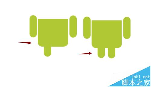 4、然后,我們就可以繪制安卓小人的手臂了,同樣用矩形工具,畫一個(gè)長(zhǎng)方形的矩形,然后用形狀工具拉一下,就可以了,然后我們?cè)谔畛漕伾纯桑?/strong>效果我們見(jiàn)下圖所示;