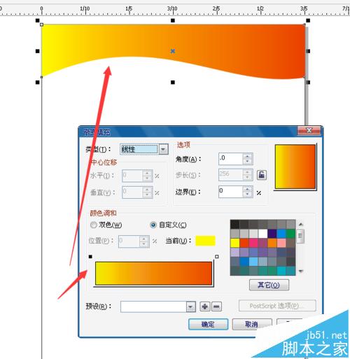 3、F11漸變填充,小編這里填充的是黃到紅的漸變。
