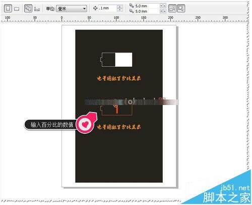 8、當然這樣是略顯單調了,可以加入一些文字。選文字工具,并輸入文字如:電量圖標百分比顯示。如圖