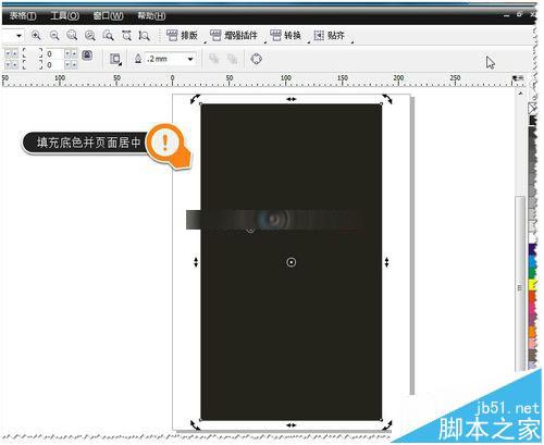 3、選中圖形按P使其在頁面居中顯示,并填充為黑色。如圖