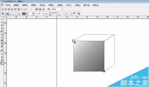 6、選擇正方體,進行“群組”,然后點擊“交互式陰影”工具,按住鼠標左鍵從正方體下方往上拉,選擇一個角度給矩形加上陰影。