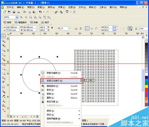 2、右鍵單擊圖形,選擇“段落文本換行”(如是文字類形狀需要先轉為曲線)如圖,