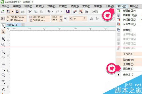 3、打軟件或文檔,在菜單欄里找到窗口——點擊調色版,如圖