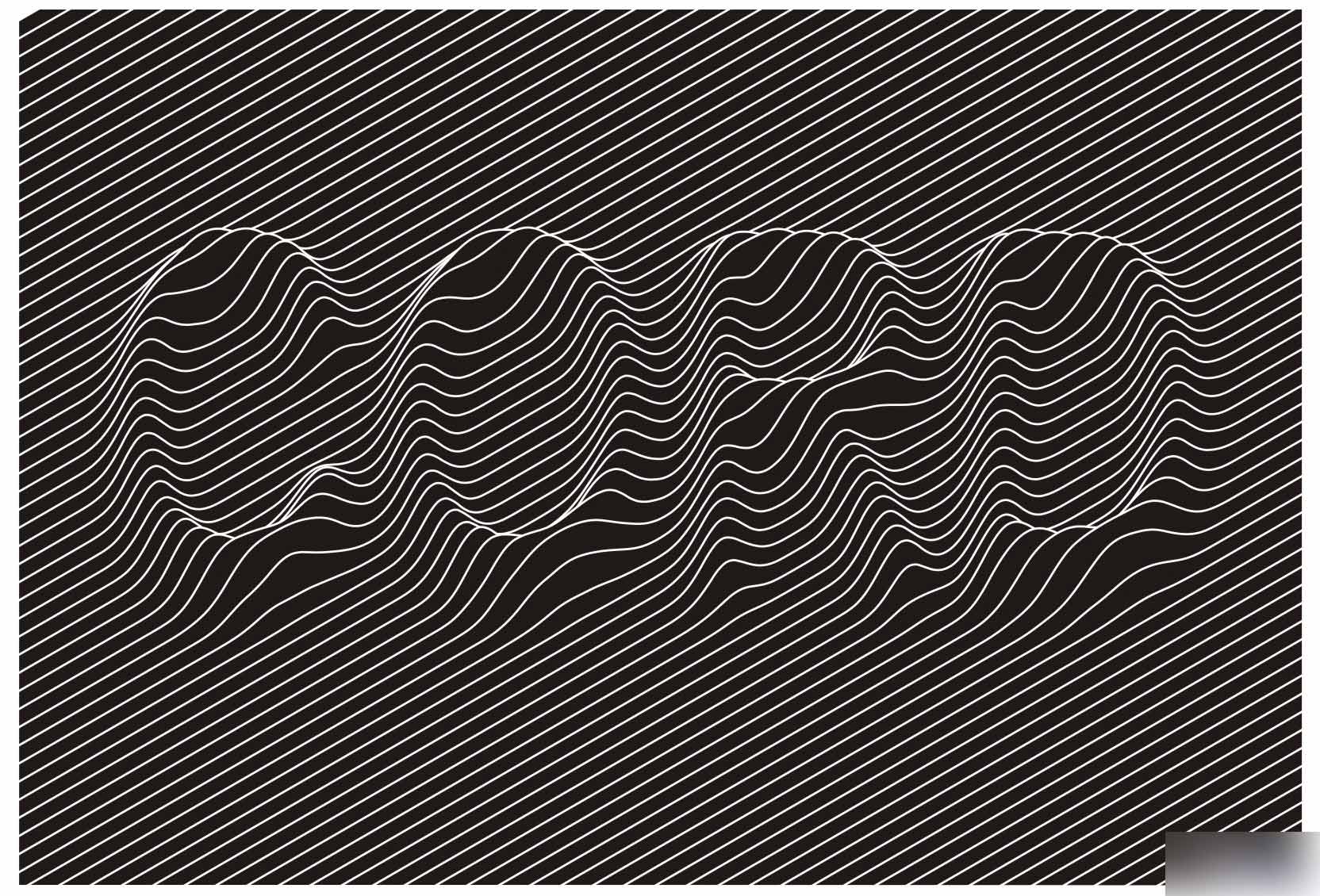 浮凸量是按畫面像素的灰度值大小使曲線對應部位向正上方凸起的最大值。這個數值用頁面寬度的倍數來度量,默認值是0.05,即頁面寬度的0.05倍。浮凸量表達的是最大值,即純黑色的凸起量,純白色保持不變。默認的凸起方向是向上,如果想得到向下凹陷的效果,可以把該參數設為負值,如下圖所示。