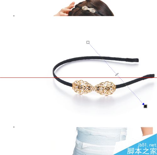 第四步,點擊以后,我們在需要調整的圖片上的合適位置拖動鼠標,這個時候時候回出現一個帶有箭頭的形狀的工具出來。兩端都可以拖動調整的。