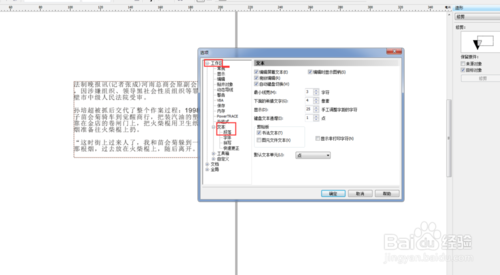 點(diǎn)擊“選項(xiàng)”之后,會(huì)彈出一個(gè)窗口,然后我們點(diǎn)擊里面的“工作區(qū)”、“文本”、“段落”。(如下圖)