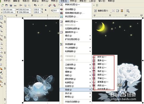 選中位圖以后,再找到濾鏡如圖,發現沒有濾鏡可以使用,這是因為CorelDRAW中的濾鏡是針對位圖來設置的,所以用濾鏡之前必須選中位圖。