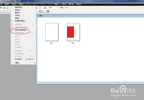 6、此時,我們單擊“視圖",下拉框中點擊”頁面排序器視圖“這個時候我們可以看到添加的新頁在”紅色矩形“頁面后面。并自動更改為第2頁。(如下圖)
