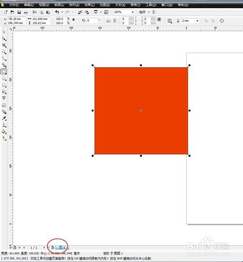 1、在coreldraw中,根據(jù)操作需要,往往需要插入多個頁面操作,首先,打開coreldraw軟件,新建一個空白文檔,為了要說明將要插入頁面的位置,我們先要繪制一個矩形。點擊“矩形工具”繪制一個矩形。(如下圖)