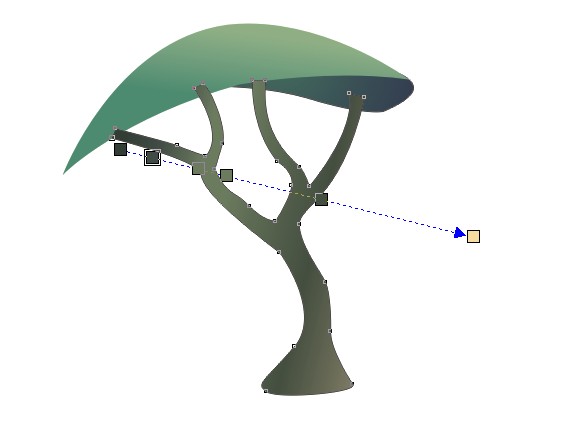 將原先畫的兩圖形去掉輪廓。在下面勾出樹干的輪廓。用鋼筆工具或貝塞爾工具皆可