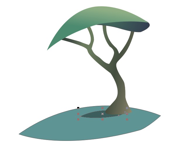 然后在樹干下勾出陰影。填色去輪廓