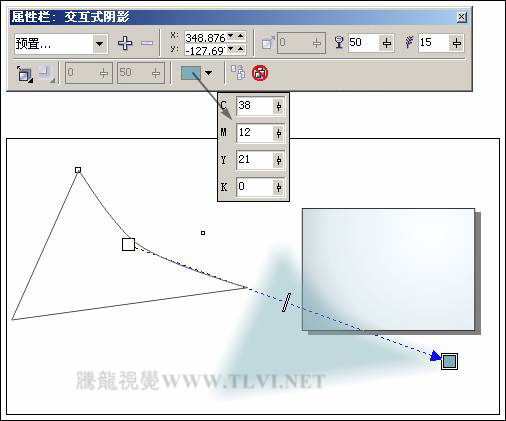 (3)接下來使用"貝塞爾"工具在頁面的相應位置,繪制曲線圖形,然后將該圖形填充任意顏色,接著使用"交互式陰影"工具,為圖形添加陰影效果,如圖7-71所示。