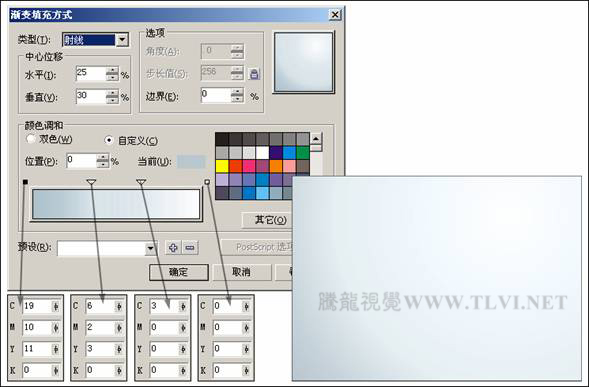 7.3.2 制作步驟:制作具有層次的背景(1)啟動CorelDRAW,新建一個空白文檔,單擊屬性欄中的"橫向"按鈕,將頁面橫向擺放,其他設置保持默認狀態。