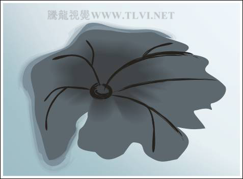 (6)接下來配合使用"貝塞爾"工具和"橢圓"工具,在頁面中繪制荷葉的葉脈路徑,然后使用"藝術筆"工具,為這些路徑添加藝術樣式,并將其填充為黑色,如圖7-79所示。