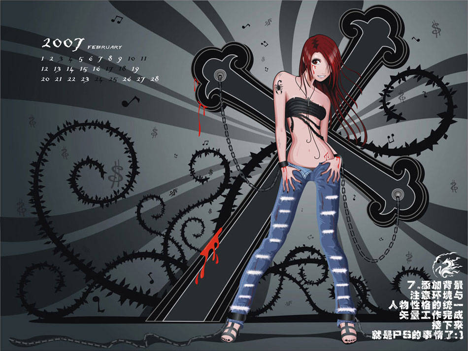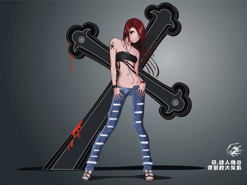 圖解-7.添加背景,注意環(huán)境與人物性格的統(tǒng)一,矢量工作完成.接下來,就是PS的事情了