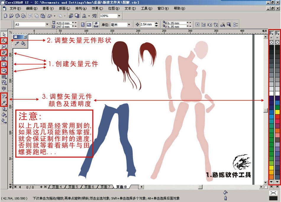圖解-1.熟練軟件工具 (1).創(chuàng)建矢量元件 (2).調(diào)整矢量元件形狀 (3).調(diào)整矢量元件 顏色及透明度
