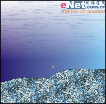 10、選擇工具箱中的交互式透明工具”,將光標(biāo)置于石頭與水面的交界處,向下拖拽鼠標(biāo),編輯圖形的透明效果,如圖6所示。