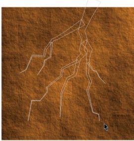 3.選中剛才畫好的所有折線后點擊菜單"窗口/卷簾工具/自然筆",然后在窗口右側(cè)的自然筆卷簾窗中選擇筆刷,筆刷立刻自動應(yīng)用于畫好的折線上。接著根據(jù)裂痕的形態(tài)分別調(diào)整每一條折線的粗細(xì),要有粗有細(xì)才更形象逼真。方法是選中折線后,在屬性欄中輸入相應(yīng)的數(shù)值就可以了。最后再分別用右鍵點擊折線邊緣,在彈出的菜單中選擇"分離"將原始線段與筆刷分開,刪除原始線段后組合全部折線(圖4)。