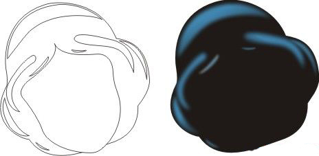 如圖畫出頭發(fā)及高光,用做面部膚色一樣的方法做出頭發(fā)上的藍色高光