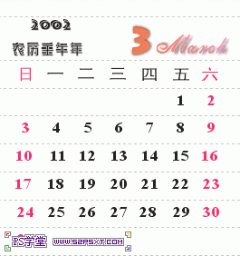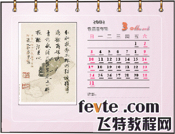做好了一個(gè)月份的日歷,其它月份的就容易多了。此例只是提供一種簡明的制作方法,希望能起到拋磚引玉的作用,大家完全可以發(fā)揮想象和創(chuàng)意,制作出更好的作品。
