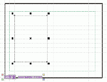4.單擊"對象管理器"泊塢窗中的"Layer1",切換到此層。首先繪制繪制三個(gè)矩形,利用"對齊輔助線"功能完成定位,分別設(shè)置不同的輪廓線寬。其中最小的矩形作為圖象框,如圖4。