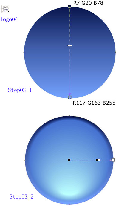 選擇交互式透明工具[logo04],應用到圓上,并將“透明樣式”(Transparency Type)改為放射性。改變并且增加控制點如圖所示。 [Step03_2]