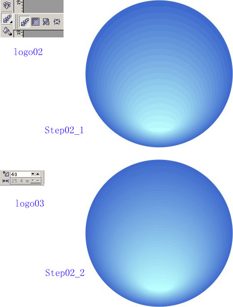 [Step02_1] 混成的結果顯得不夠光滑圓潤,這是因為混成步數不夠的。保持混成對象的選中,在屬性欄上把默認的20步改為40。[logo03] [Step02_2]