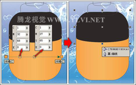 (6)使用“交互式填充”工具,為香水瓶下半身圖形填充漸變色。然后將香水瓶上半身圖形填充為深褐色,如圖12-95所示。