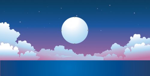 6、繪制月亮。選擇工具箱中的“橢圓工具”按住ctrl鍵畫正圓,在單擊填充工具里的漸變填充,去除輪廓線效果圖如下。