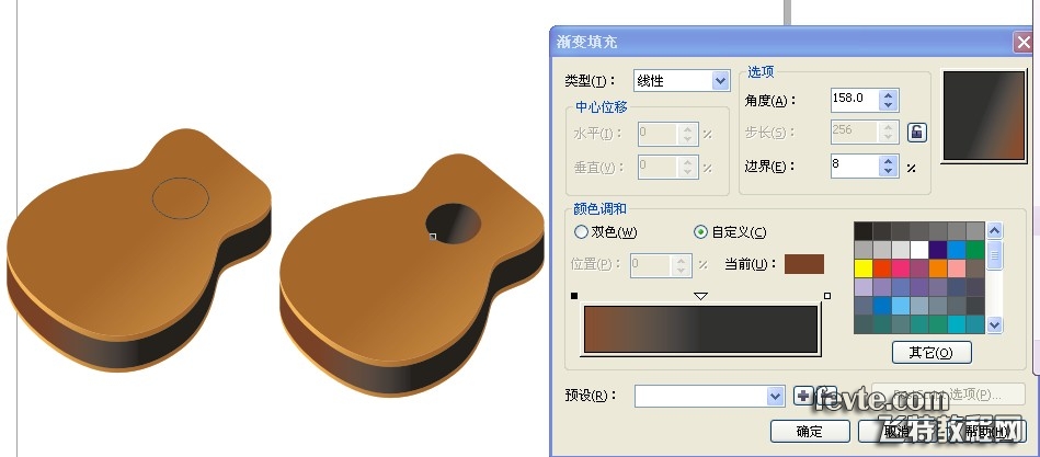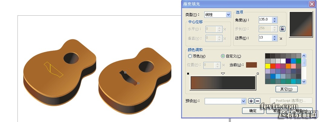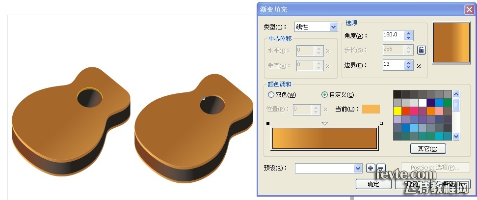 本教程向大家介紹coreldRAWx4繪制一款木吉他造型,教程繪制出來的吉他色彩鮮明,非常不錯,教程充分表現出了其材質。教程很實用,推薦給大家,喜歡的朋友可以跟著一起來學習,當然了,吉他的造型各種各樣,你也可以繪制一把屬于自己的小吉他!