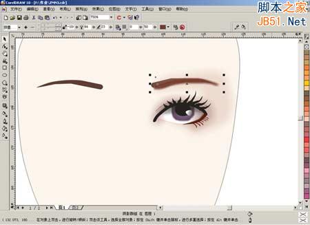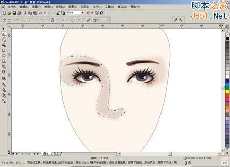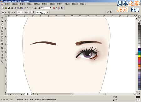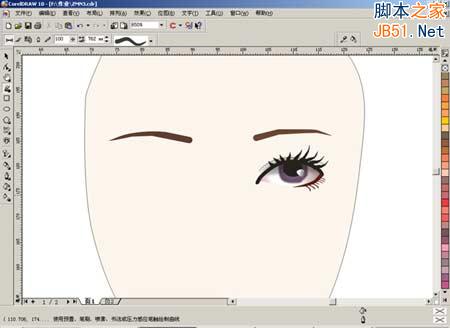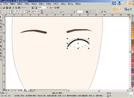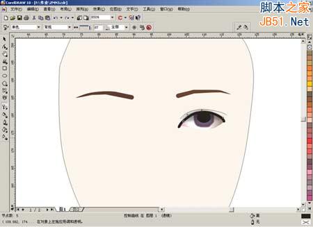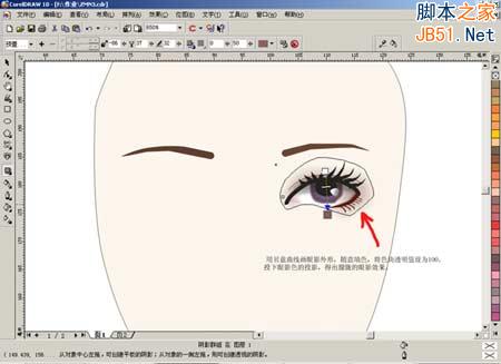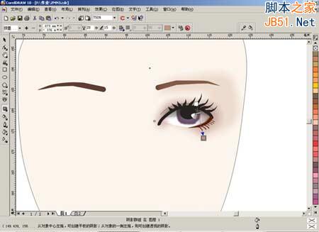 畫眼珠,為了使眼珠邊界柔和,我用貝茲畫了眼珠的輪廓,隨意填了一塊色,投下影子,然后使這塊形狀的本色透明度設為100,使的出柔和的眼珠邊界效果,你看到的眼珠其實是投下的陰影區,(以下稱此法為陰影法)