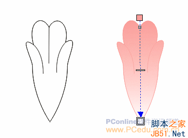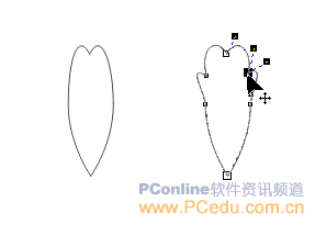 3.將橢圓形調節成花瓣形狀。(為了豐富花瓣的外形,可以在橢圓形線上雙擊,添加節點后調節花瓣外形)