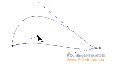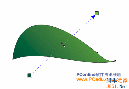 (貝塞爾工具)畫曲線,然后用形狀工具在葉尖處加上一個節點,并進行調整,使葉尖處弧形向下。