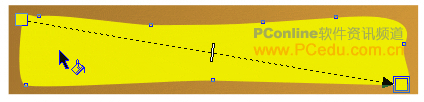 圖18使用“手繪工具” 在該矩形對象的內部繪制一個不規則的波浪線圈,然后用“交互式漸變工具” 從左上角至右下角位置開始拖動,為其進行線性填充。起點顏色的數值為:R=208、G=203、B=0,終點顏色的數值為:R=235、G=230、B=0。再用鼠標右鍵單擊顏色欄最上方的無色按鈕 ,效果如圖19。