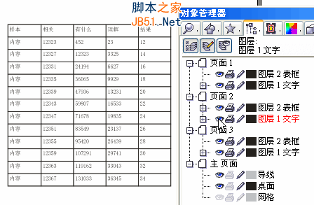 11、 我們先來編輯文字部分,為避免框線的干擾,在“對象管理”泊塢窗中將表格框線所在的圖層點為“不可編輯”