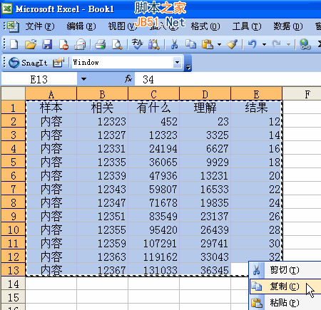 1、現在我們要把MS EXCEL表格弄到CD中去,直接拷貝所需要的區域;