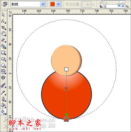 5、用交互式填充工具拉出一個(gè)從白到紅的射線漸變,雙擊漸變線添加一個(gè)色塊C: 0 M: 66 Y: 66 K: 0,效果如下。