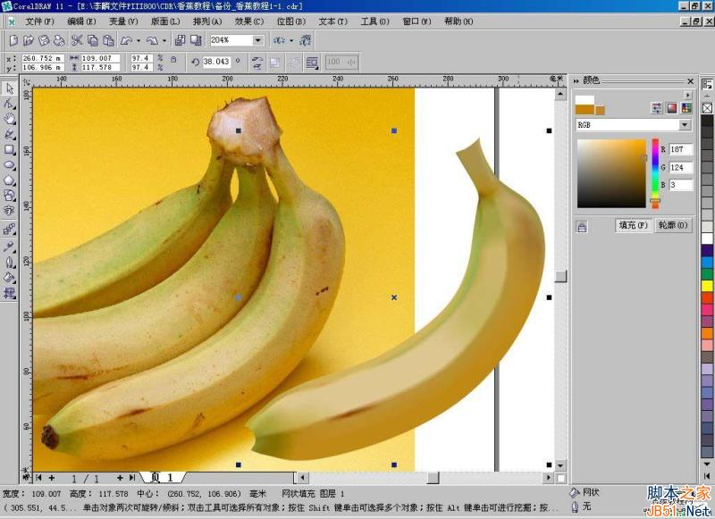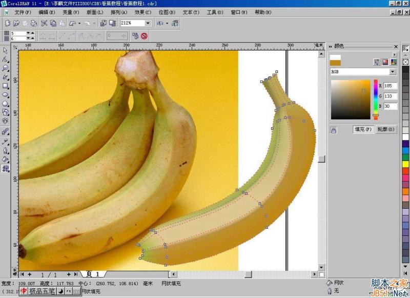 應網友的要求,我把香蕉的制作過程整理出來,這算不算教程暫且不論,主要目的是想和大家一起討論CD中互動式網格填充的用法。關于介紹這方面的書太少了,有也是一筆代過,包括一些“寶典”級的大部頭著作也是如此,我們只能靠自己來摸索了。