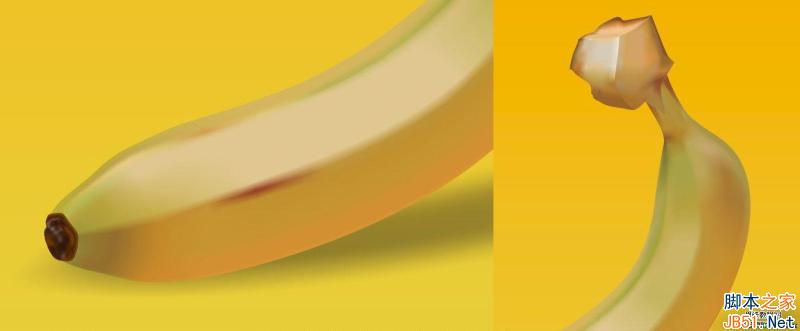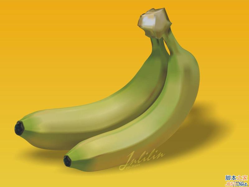 度起關鍵作用,如果控制柄很短,則顏色漸變會顯得生硬。下圖是基本著色完成的一個香蕉。