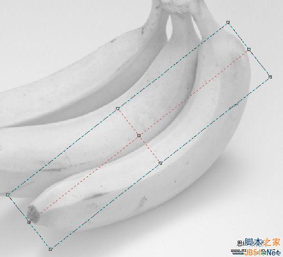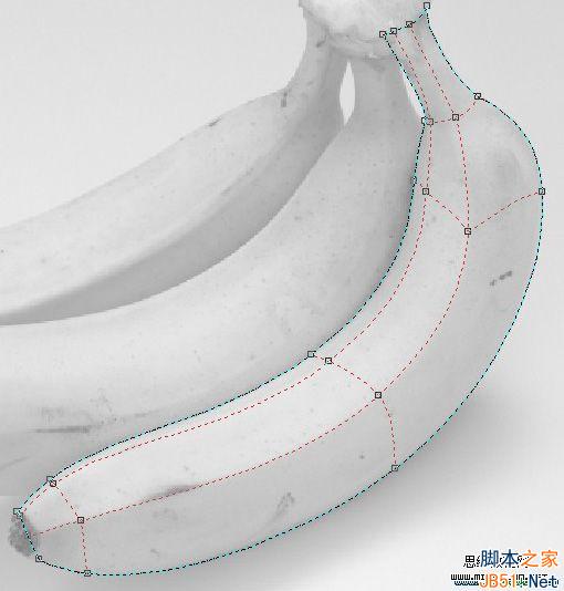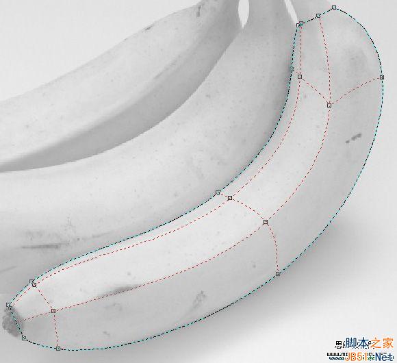 12、在緊靠香蕉的兩條主要突起棱附近各添加一條網格線,并填色,使主要分界線顯出來,體現出立體感,在主要突起棱附近加網格是為了不讓分界線太硬。如下圖。