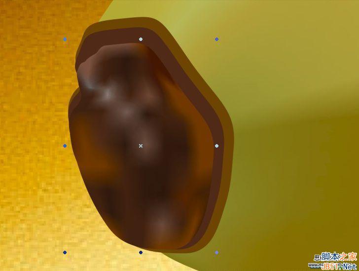 6、用互動式網格填充工具拖動并調整節點到下圖模樣,工具用法與形狀工具相同,要點是讓那根長軸中