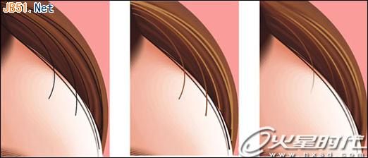 (6)用同樣的方法處理其它發絲。注意添加透明時要曲線兩端透明。