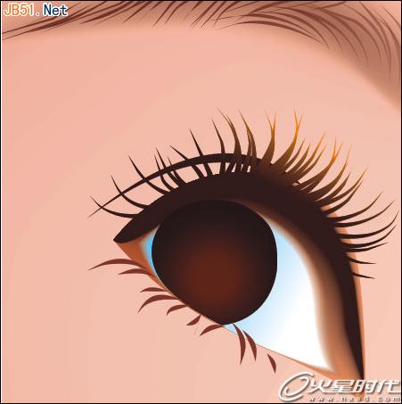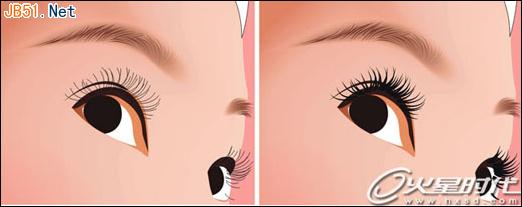 (6)用繪制眉毛的方法處理眼睫毛。因為這里使用的筆觸兩端形狀不一樣,所以要注意一個問題:繪制曲線時每條線都應要以靠近眼的那一方為起始點,所有曲線的起始與終止點要保持統一。
